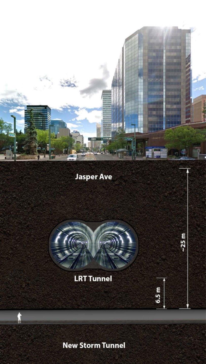 The Downtown Intensification Project (DTI) was undertaken to upgrade Edmonton’s downtown storm sewer infrastructure. This project involved the installation of 300 m of 1,600 mm ID FRP pipe via microtunneling under the twin LRT line within 6 mm of settlement. The launch shaft was at 100 Avenue and the retrieval shaft north of Jasper Avenue. The tunnel alignment was expected to be in clay till with embedded empress sand formation. Due to its difficulties, This project was recognized with an Award of Excellence in Project Management in 2020 from the Consulting Engineers of Alberta.